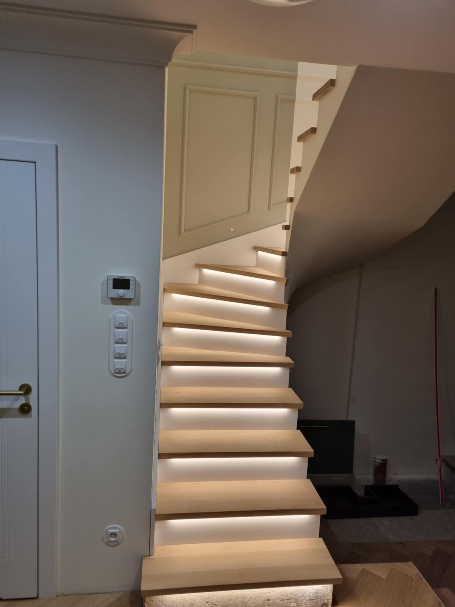 - Oświetlenie dekoracyjne i punktowe – instalacja systemów oświetleniowych, które tworzą odpowiedni nastrój i podkreślają walory architektoniczne pomieszczeń.